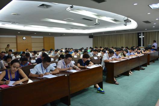本次考試集團(tuán)領(lǐng)導(dǎo)高度重視,由所有題目均由集團(tuán)董事長親自修撰,并于考前一天密封分別送到百色總部及南寧總部。經(jīng)過學(xué)習(xí)備戰(zhàn)及充分的準(zhǔn)備,9月29日晚上七點(diǎn)半集團(tuán)百色考場(chǎng)和南寧考場(chǎng)同時(shí)開考,兩個(gè)考場(chǎng)均分別請(qǐng)來了幾位特殊的監(jiān)考員,他們都不是集團(tuán)員工,嚴(yán)格的考場(chǎng)紀(jì)律有利于員工們更好地發(fā)揮。在考場(chǎng)里,集團(tuán)百色總部、南寧總部全體員工終于迎來的這一激動(dòng)人心的時(shí)刻。6點(diǎn)鐘下班后,不少員工早已按耐不住內(nèi)心的熱情,早早的到達(dá)考場(chǎng),找到自己的位置后,便開始爭(zhēng)分奪秒的認(rèn)真復(fù)習(xí)起來。時(shí)間一分一秒的過去,員工們也陸陸續(xù)續(xù)的來到了考場(chǎng),對(duì)業(yè)務(wù)知識(shí)掌握較為熟練的員工則靜靜的在考場(chǎng)上調(diào)整好心態(tài)等待考試,雖然還沒有到考試時(shí)間,但考場(chǎng)早已如同考試中一般的安靜。隨著考試鈴聲的敲響,南寧總部在集團(tuán)第二綜合辦公室主任熊莎莎經(jīng)理和監(jiān)考老師的主持下,百色總部在集團(tuán)第五綜合辦主任徐 青的和監(jiān)考老師的主持下,佩戴好工牌靜靜的坐在自己的位置上等待老師下發(fā)試卷。在考試的過程中,每位員工嚴(yán)格要求自己,遵守考場(chǎng)紀(jì)律,都能在規(guī)定的時(shí)間內(nèi)完成所有的答卷。表面似風(fēng)平浪靜,實(shí)際如驚濤駭浪。經(jīng)過長達(dá)1個(gè)小時(shí)的奮戰(zhàn),終于順利地結(jié)束了2015年員工業(yè)務(wù)能力知識(shí)的考試,在監(jiān)考老師的嚴(yán)格監(jiān)督下,考場(chǎng)紀(jì)律井然有序,未發(fā)現(xiàn)有作弊現(xiàn)象,所有考員均有序的離開了考場(chǎng)。離開考場(chǎng)后,大家三三倆倆地聚集在一起,紛紛發(fā)表對(duì)考題的看法,對(duì)計(jì)算題過程結(jié)果進(jìn)行討論,那激動(dòng)熱切的場(chǎng)面如同高考結(jié)束般的放松。