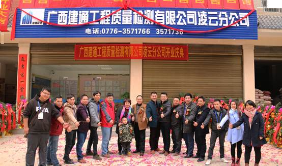 2016年1月27日下午4點(diǎn)18分,在燦爛的陽光下,伴著喜慶的禮炮聲,集團(tuán)副總裁黃承理及廣西建通工程質(zhì)量檢測(cè)有限公司總經(jīng)理陸虹任為代表的集團(tuán)高層領(lǐng)導(dǎo)共同為檢測(cè)凌云分公司開業(yè)揭牌并宣布廣西建通工程質(zhì)量檢測(cè)有限公司凌云分公司正式開業(yè)!到場(chǎng)嘉賓紛紛為凌云分公司的開業(yè)致以了真誠的祝福。
