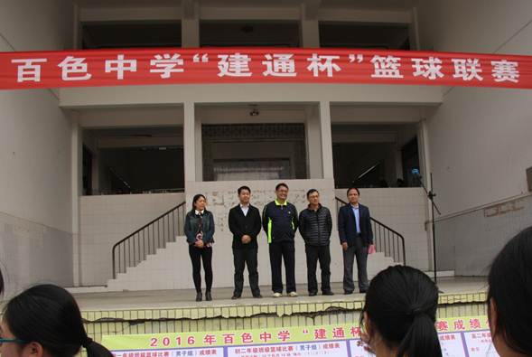 2016年3月14日下午集團副總裁羅 杰、集團副總裁韋 霖應邀參加在百色中學舉辦的2016年百色中學“建通杯”籃球聯(lián)賽的開幕儀式,為豐富師生課余校園文化生活,搭建學生展示自我的平臺,鼓勵全面提高學生素質,廣西建通投資集團為本次聯(lián)賽活動捐助1萬元作為聯(lián)賽資金。