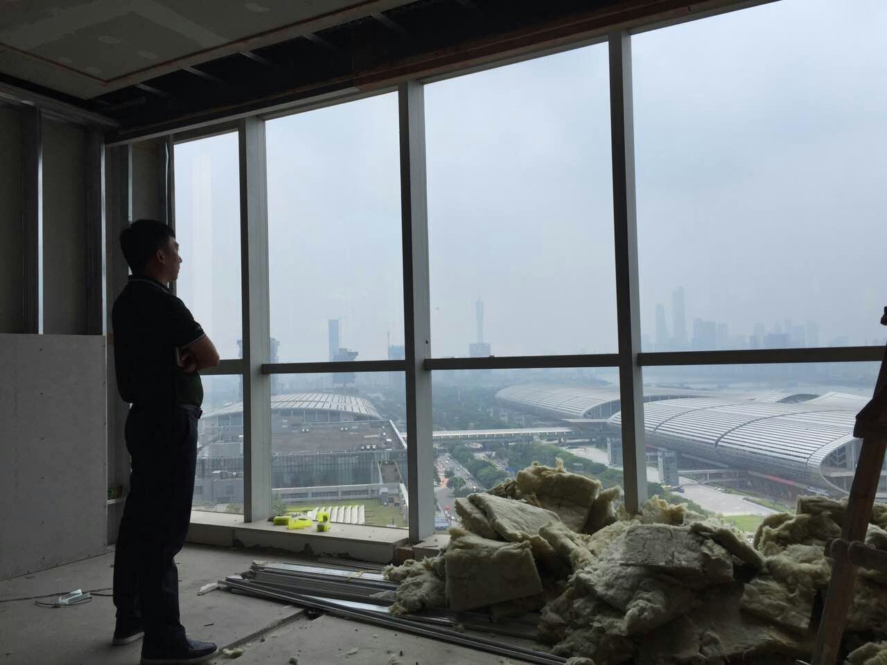 圖為鄧安杰董事長(zhǎng)駐足正在裝修的廣州總部辦公室窗前構(gòu)思集團(tuán)發(fā)展藍(lán)圖