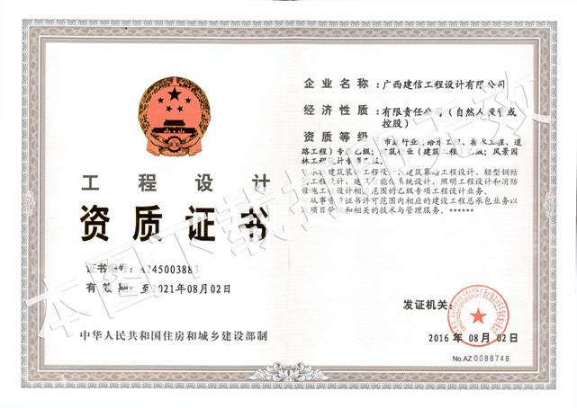 風(fēng)景園林工程設(shè)計專項(xiàng)乙級資質(zhì)的取得,不僅拓寬了經(jīng)營領(lǐng)域,也標(biāo)志著廣西建信工程設(shè)計有限公司的綜合實(shí)力再上新臺階,并提高了品牌知名度,為進(jìn)一步提升核心競爭力提供了有利條件。