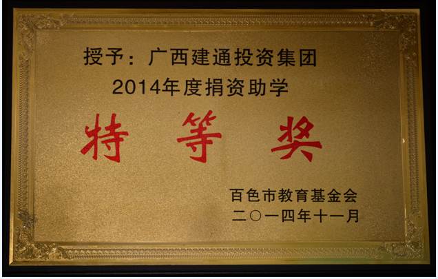 2014年集團(tuán)獲年度捐資助學(xué)特等獎(jiǎng)