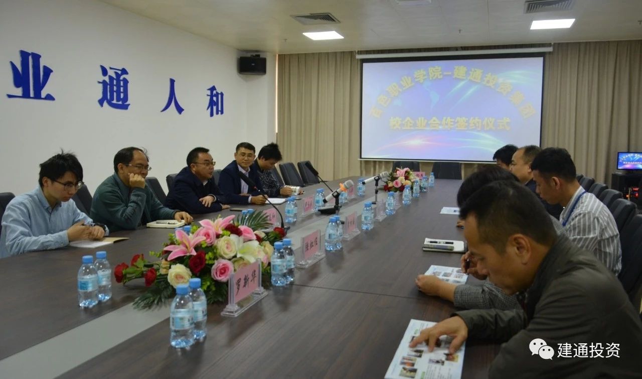 2019年4月2日上午10:30,百色職業(yè)學(xué)院-建通投資集團(tuán)校企業(yè)合作簽約儀式在我集團(tuán)百色總部“建通中心”2號樓A座2樓會務(wù)室順利召開,并成功簽約。出席此次簽約儀式的嘉賓有集團(tuán)副董事長、總工程師謝乃鵬、集團(tuán)副董事長黃樹威等集團(tuán)高層領(lǐng)導(dǎo)與百色職業(yè)學(xué)院黨委委員副院長那家法、黨委宣傳部部長楊昌和等5位校領(lǐng)導(dǎo)。校企雙方精誠合作,攜手共進(jìn)。