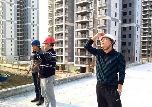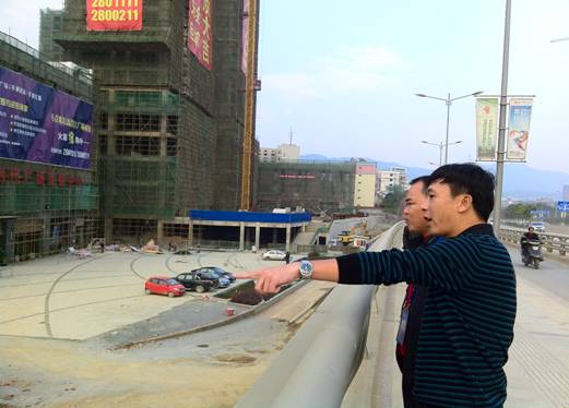 參觀結束后,開業(yè)儀式告一段落。鄧董事長心系建通·時代廣場項目的建設,在集團副總裁黃承理,房地產(chǎn)及營銷策劃部工作人員的陪同下,鄧董事長首先對與建通時代廣場接壤的市政府重點工程濱江大道的建設情況進行了實地查看。截至發(fā)稿時止,濱江大道已鋪設完碎石基礎,即將鋪設水穩(wěn)層。當鄧董事長得知春節(jié)前濱江大道可完成瀝青路面鋪設后,十分高興的指出:“濱江大道的建設是迎龍區(qū)的發(fā)展紐帶和輻射源,它的建設將奠定迎龍區(qū)核心區(qū)域發(fā)展重心,極大的推動樓盤的商業(yè)價值和品牌價值,與其他項目對比,更加凸顯了我們項目的核心區(qū)位優(yōu)勢、交通優(yōu)勢與配套優(yōu)勢,因此對我們的樓盤具有非常重大的意義!”隨后,鄧董事長來到1#樓廣場前察看外墻裝修及電梯廳裝修情況。截至發(fā)稿時止,1#樓外墻裝修玻璃幕墻骨架已搭設完畢,正在安裝部分玻璃。鄧董事長走進跟前察看工人安裝玻璃工作,對安裝的進度效果表示滿意,他指出:“按照目標計劃,1#樓將在春節(jié)前外墻要首先裝修完畢,屆時將把廣場的整體效果體現(xiàn)出來,為即將在廣場舉辦的重要活動創(chuàng)造良好的景觀條件。”行程最后,鄧董事長還對時代廣場的其他棟號的建設情況一一進行了察看,并對下一步的施工作業(yè)的開展作出了重要的部署。